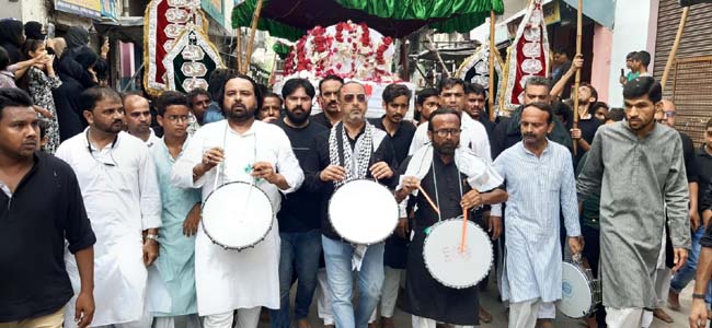 امروہہ:انجمن تحفظ عزاداری کے زیراہتمام چھ محرم کا جلوس صبح 9 بجے عزاخانہ مسماۃ نورن، محلہ کالی پگڑی سے برآمد ہوا، جس میں دراب زیدی نے مرثیہ "آج شاہ بیکس کی آخری سواری ہے” پڑھا۔ جلوس میں عزاداران حسین ننگے پاؤں، ننگے سر نوحہ خوانی کر رہے تھے۔ انجمن کی ایک ایمبولینس جلوس کے ساتھ چل رہی تھی جس میں چیف میڈیکل آفیسر کے مقرر کردہ ڈاکٹر دوائیاں تقسیم کر رہے تھے۔ جلوس میں شامل لوگ مختلف عزاخانوں، گھروں میں حاضری دیتے ہیں۔ آج کے جلوس کی خاص بات یہ ہے کہ آج کا باجہ بہت مختلف ہے، اس میں تقریباً 22 بینڈ ہیں۔ چھ محرم سے جلوسوں میں شرکت کرنے والے عزاداروں کی تعداد بڑھ جاتی ہے۔ آج دلدل اور تخت پر چھتری ہے۔ جلوس مچھرٹہ، منڈی چوب، دربار کلاں، کٹکوئی، کالی پگڑی، گھیر کرم علی خان، لکڑا،سٹی، حقانی، جعفری، پچدرہ، قاضی زادہ، صدو، نقشبی، دربار میرا خان، چاہ غوری، مجاپوتہ، کوٹ، دانشمندان، گزری ہوتا ہوا نورن میں اختتام پذیر ہوا۔ یہ جلوس دہشت گردی کے خلاف لڑنے والے امام حسین کے پیغام کا پرچار اور نشر کرتا ہے۔ امام حسین نے کربلا میں اپنی جان کا نذرانہ پیش کیا لیکن اپنے نانا کے دین اسلام کو بچایا۔ یہ جلوس ہمیں ایک دوسرے سے ملنے کا موقع فراہم کرتے ہیں۔ ان جلوسوں کا سماجی پہلو یہ ہے کہ ہم ایک دوسرے سے خیالات کا تبادلہ کر سکتے ہیں۔ اور اس جلوس کا مقصد امن کا پیغام دینا ہے۔ امروہہ کی پہچان آج تک باہر کے شہروں اور ملکوں میں امن و سکون کی بنا پر قائم ہے۔انجمن تحفظ عزاداری کے جلوس میں ڈسٹرکٹ مجسٹریٹ امروہہ کی طرف سے نامزد کردہ ایڈہاک کمیٹی کے اراکین ضیاء اعجاز نقوی، لیاقت علی، باقر رضا، ندیم نقوی، شہزاد رضا، قاسم زیدی وغیرہ شریک تھے۔ جلوس کی نگرانی انجمن رضا کاران حسینی کے قائد غلام سجاد، جنرل سیکریٹری خورشید حیدر زیدی، اختر عباس اپو، ڈاکٹر چندن نقوی،شان مجتبیٰ، سلیم زیدی، محمد غالب، حسین حیدر،نظیر حیدر، شان مہدی، امداد عابدی، رضا شمیم ،نوید اصغر وغیرہ نے کی۔