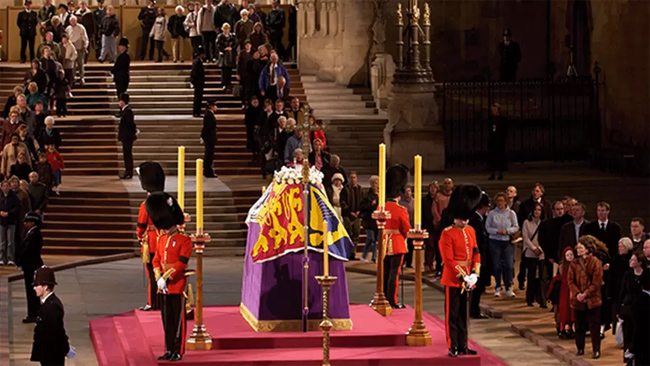 اس ہفتہ کے دوران ملکہ الزبتھ دوم کا جسد خاکی ویسٹ منسٹر ہال میں رکھا گیا اور لاکھوں افراد قطاروں میں لگ کر ملکہ کا دیدار کر رہے ہیں۔برطانوی حکومت کے مطابق پارکس، چوک، گرجا گھروں میں بھی آخری رسومات دیکھنے کیلئے اسکرینیں لگائی جائیں گی۔ دوسری جانب ملکہ الزبتھ دوم کی آخری رسومات میں مدعو عالمی رہنماؤں کی فہرست جاری کردی گئی ہے۔ اس درمیان خبر ہے کہ صدر جمہوریہ ہند ملکہ برطانیہ کی آخری رسوم میں شرکت کیلئے برطانیہ پہنچ گئی ہیں۔ روس اور شمالی کوریا کے صدر جنازے میں شرکت نہیں کرسکیں گے۔برطانوی میڈیا کے مطابق امریکی صدر جوبائیڈن اور ان کی اہلیہ جل بائیڈن مہمانوں کی فہرست میں سرفہرست ہیں، اس کے علاوہ فرانس کے صدرایمانوئل میکرون اور ترکیہ کے صدر رجب طیب اردغان بھی شریک ہوں گے۔ صدرجمہوریہ ہند دروپدی مرمو شرکت کررہی ہیں۔